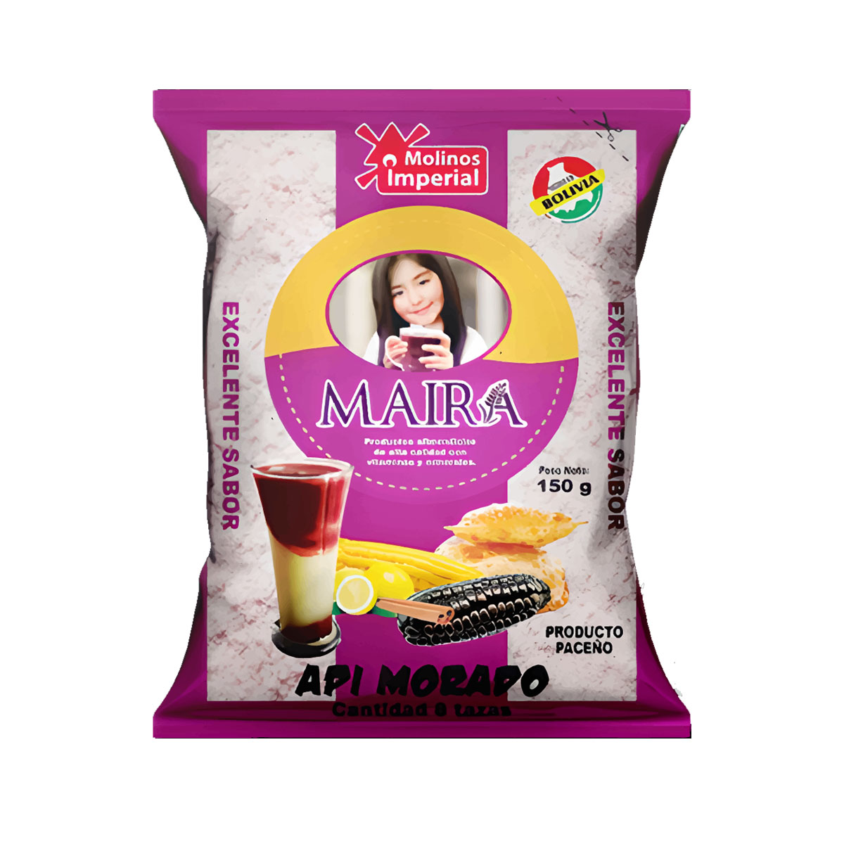 O Api Roxo é feito principalmente de farinha de milho roxo, água, açúcar e especiarias como canela e cravo. Geralmente é servido com buñuelos (comida frita) ou "pastel con queso" (empanadas de queijo). A marca "Mayra" é apenas uma das apresentações comerciais deste produto, o que facilita seu preparo.